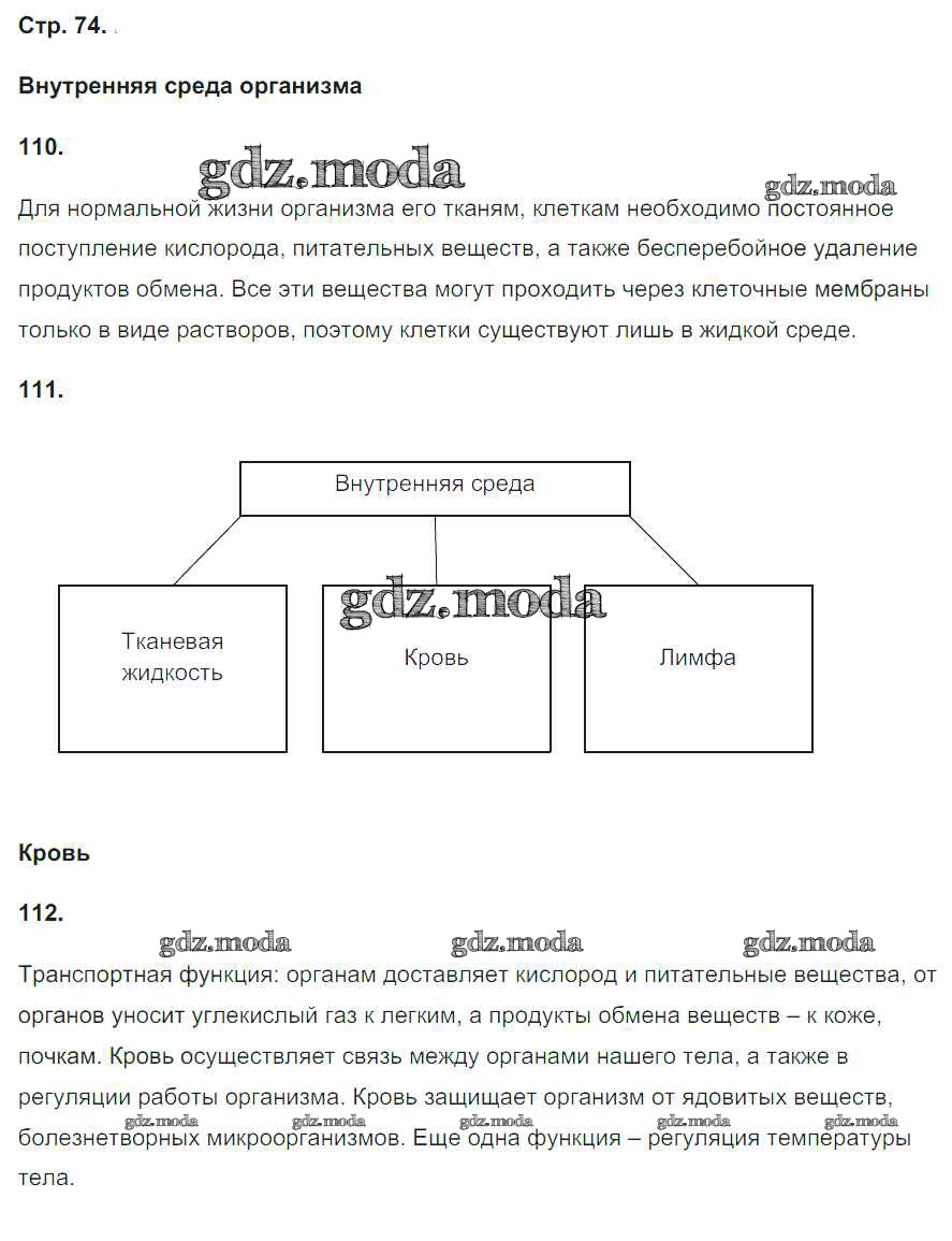 ОТВЕТ на задание № 74 Рабочая тетрадь по Биологии 8 класс Сонин УМК