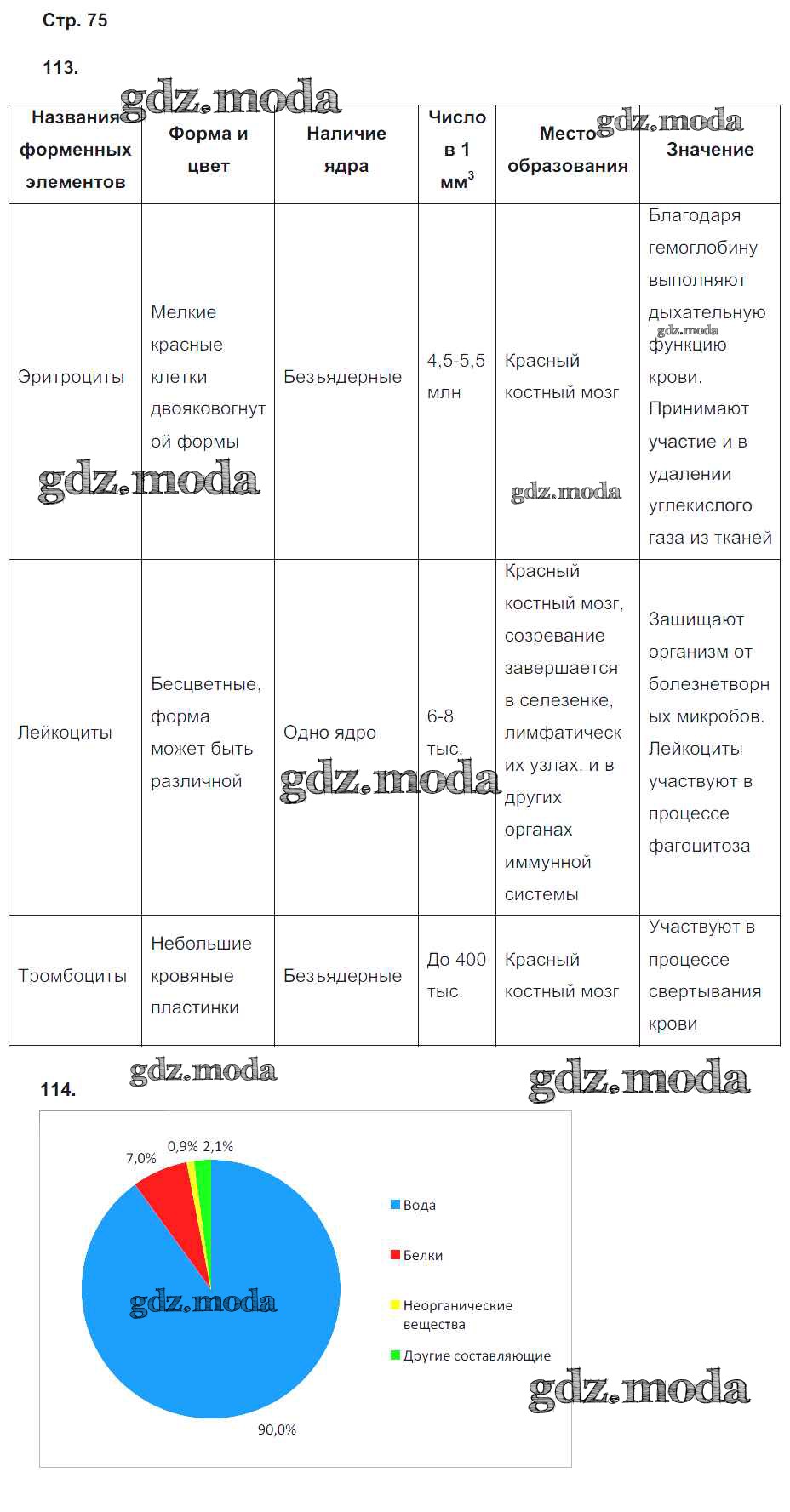 ГДЗ решение к заданию № 75 Биология 8 класс рабочая тетрадь Сонин Н.И. Дрофа 2017 ФГОС бесплатно на гдз.мода!