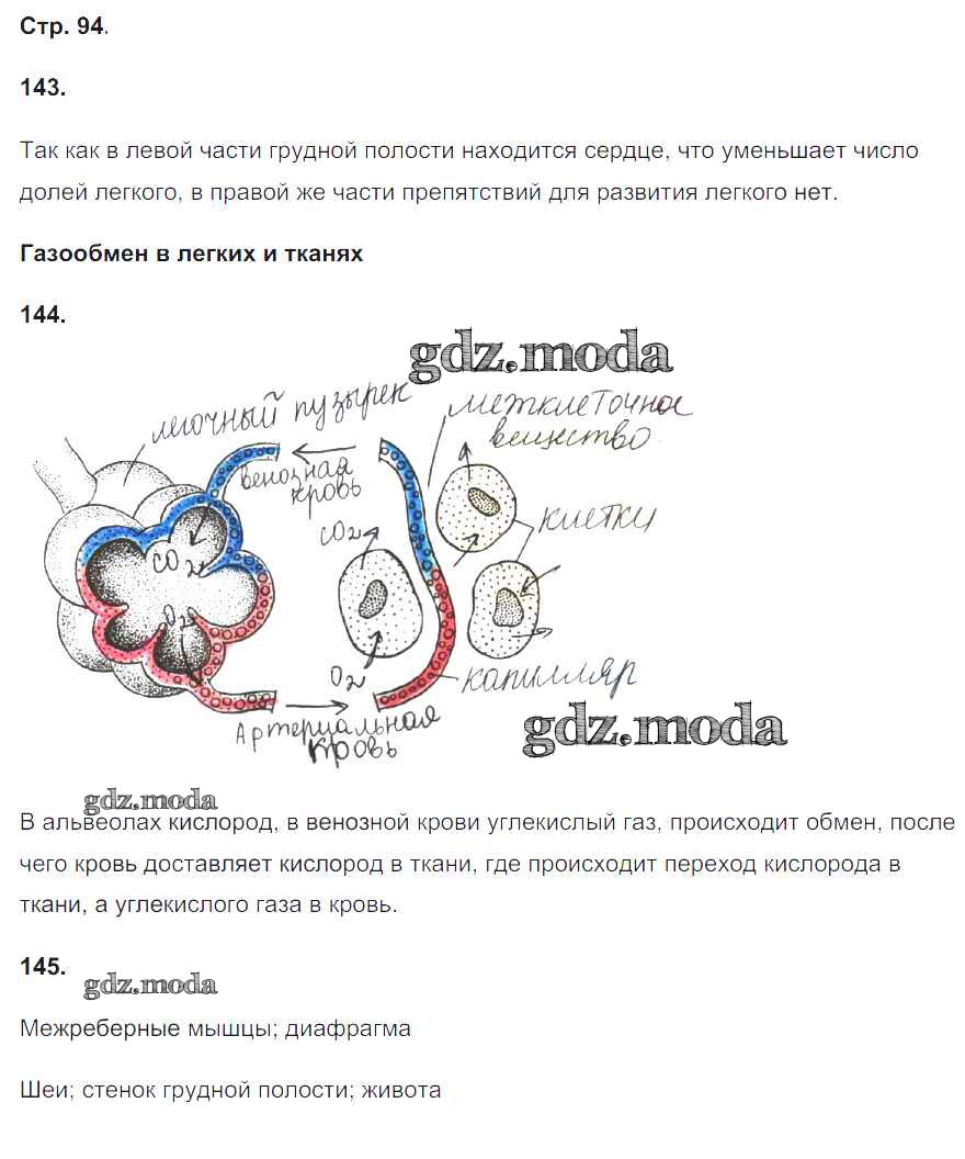 ГДЗ решение к заданию № 94 Биология 8 класс рабочая тетрадь Сонин Н.И. Дрофа 2017 ФГОС бесплатно на гдз.мода!