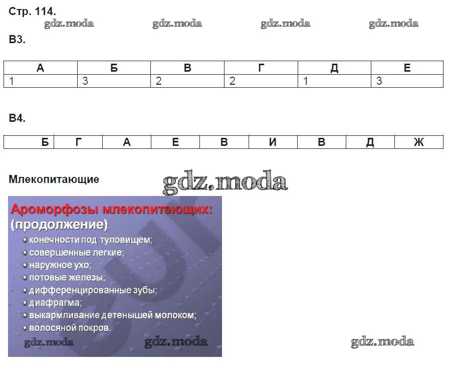 ГДЗ решение к заданию № 114 Биология 8 класс рабочая тетрадь Захаров В.Б. (к уч. Сонина Н.И.) Дрофа 2018 ФГОС бесплатно на гдз.мода!