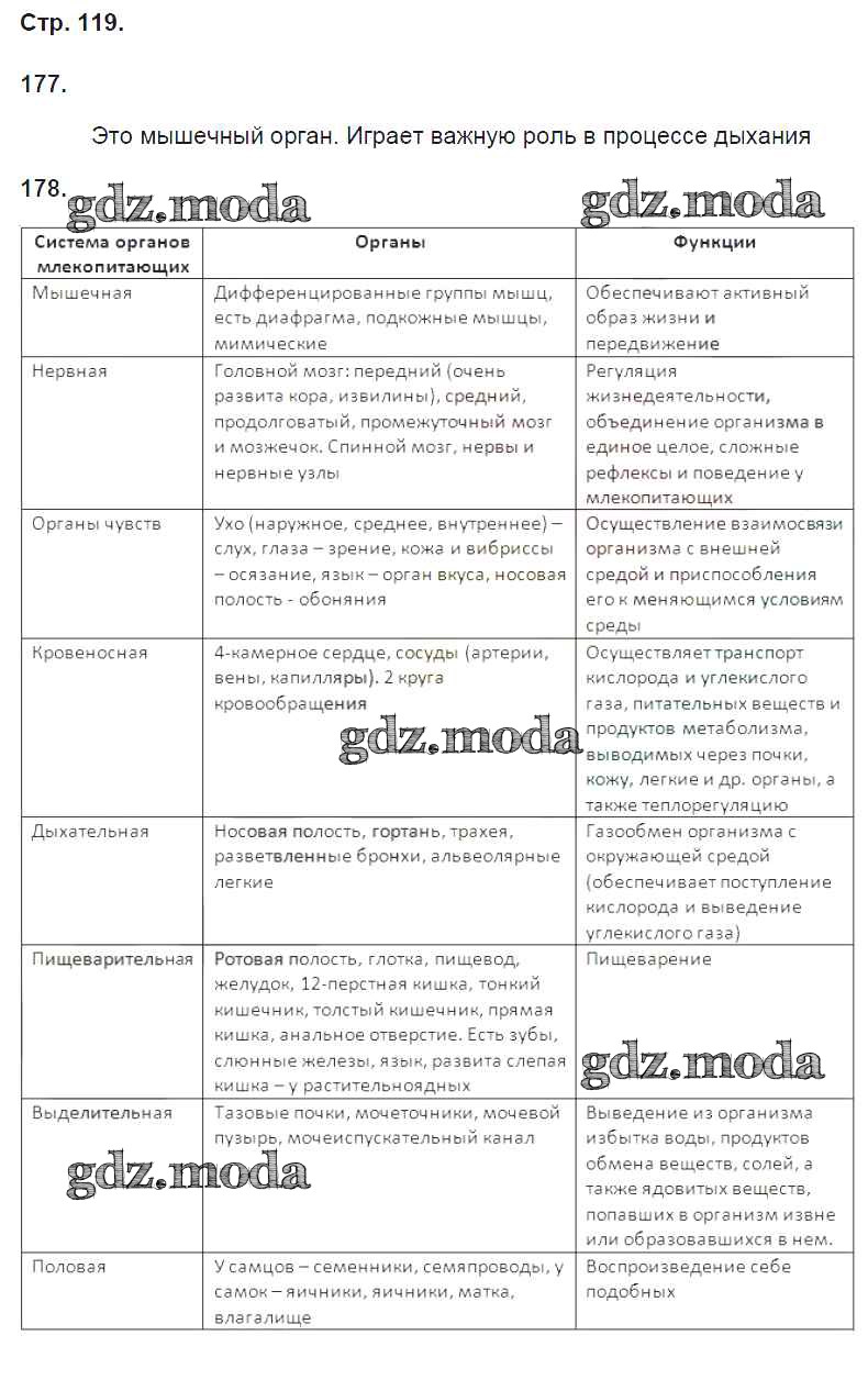 ГДЗ решение к заданию № 119 Биология 8 класс рабочая тетрадь Захаров В.Б. (к уч. Сонина Н.И.) Дрофа 2018 ФГОС бесплатно на гдз.мода!