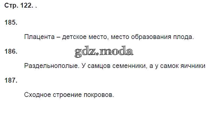 ГДЗ решение к заданию № 122 Биология 8 класс рабочая тетрадь Захаров В.Б. (к уч. Сонина Н.И.) Дрофа 2018 ФГОС бесплатно на гдз.мода!