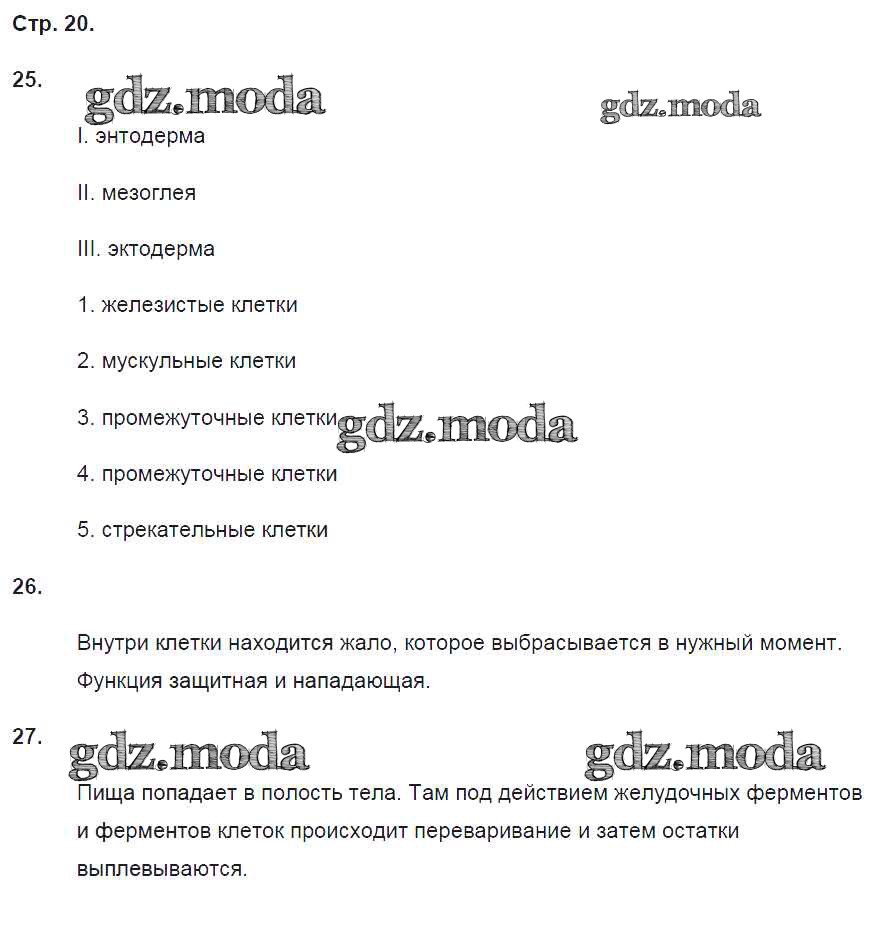 ГДЗ решение к заданию № 20 Биология 8 класс рабочая тетрадь Захаров В.Б. (к уч. Сонина Н.И.) Дрофа 2018 ФГОС бесплатно на гдз.мода!