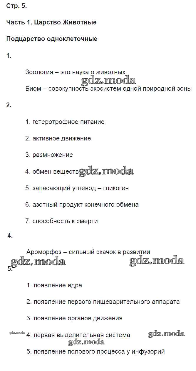 ОТВЕТ на задание № 5 Рабочая тетрадь по Биологии 8 класс Захаров УМК