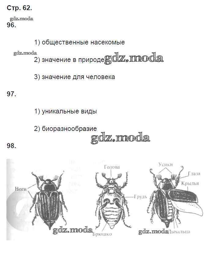 ГДЗ решение к заданию № 62 Биология 8 класс рабочая тетрадь Захаров В.Б. (к уч. Сонина Н.И.) Дрофа 2018 ФГОС бесплатно на гдз.мода!