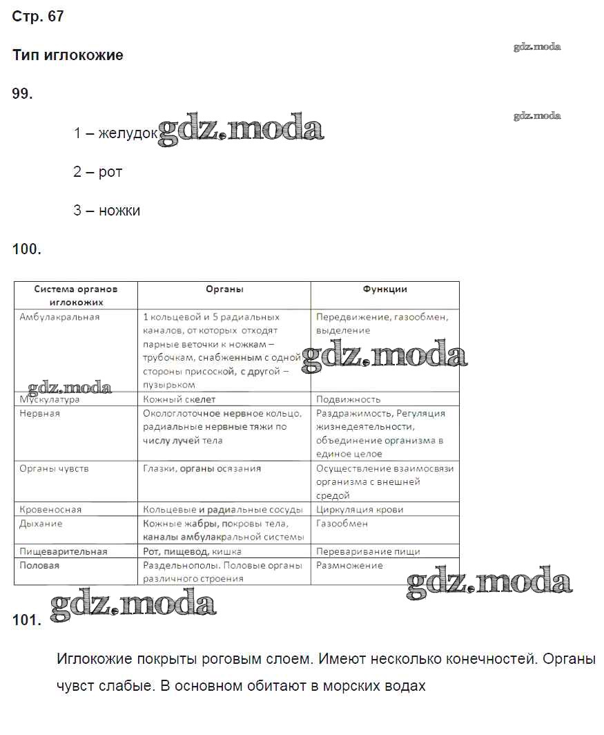 ГДЗ решение к заданию № 67 Биология 8 класс рабочая тетрадь Захаров В.Б. (к уч. Сонина Н.И.) Дрофа 2018 ФГОС бесплатно на гдз.мода!