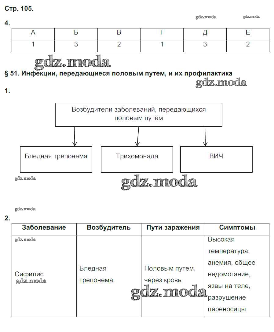 ГДЗ решение к заданию № 105 Биология 8 класс рабочая тетрадь Жемчугова М.Б. Русское слово 2017 ФГОС бесплатно на гдз.мода!