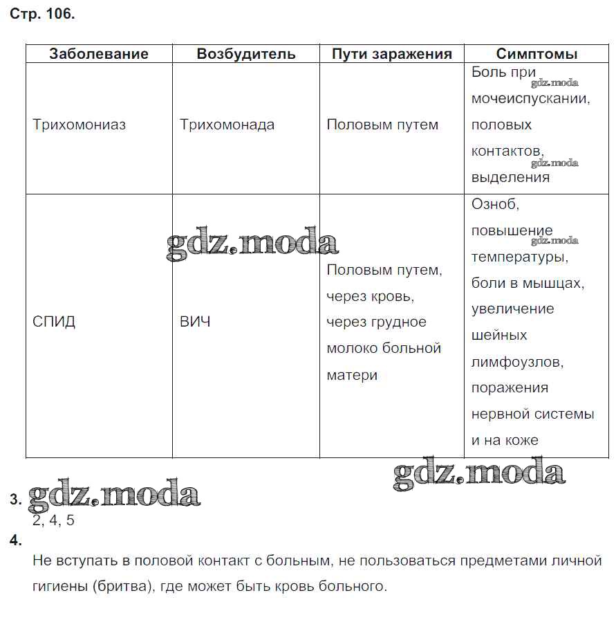 ГДЗ решение к заданию № 106 Биология 8 класс рабочая тетрадь Жемчугова М.Б. Русское слово 2017 ФГОС бесплатно на гдз.мода!