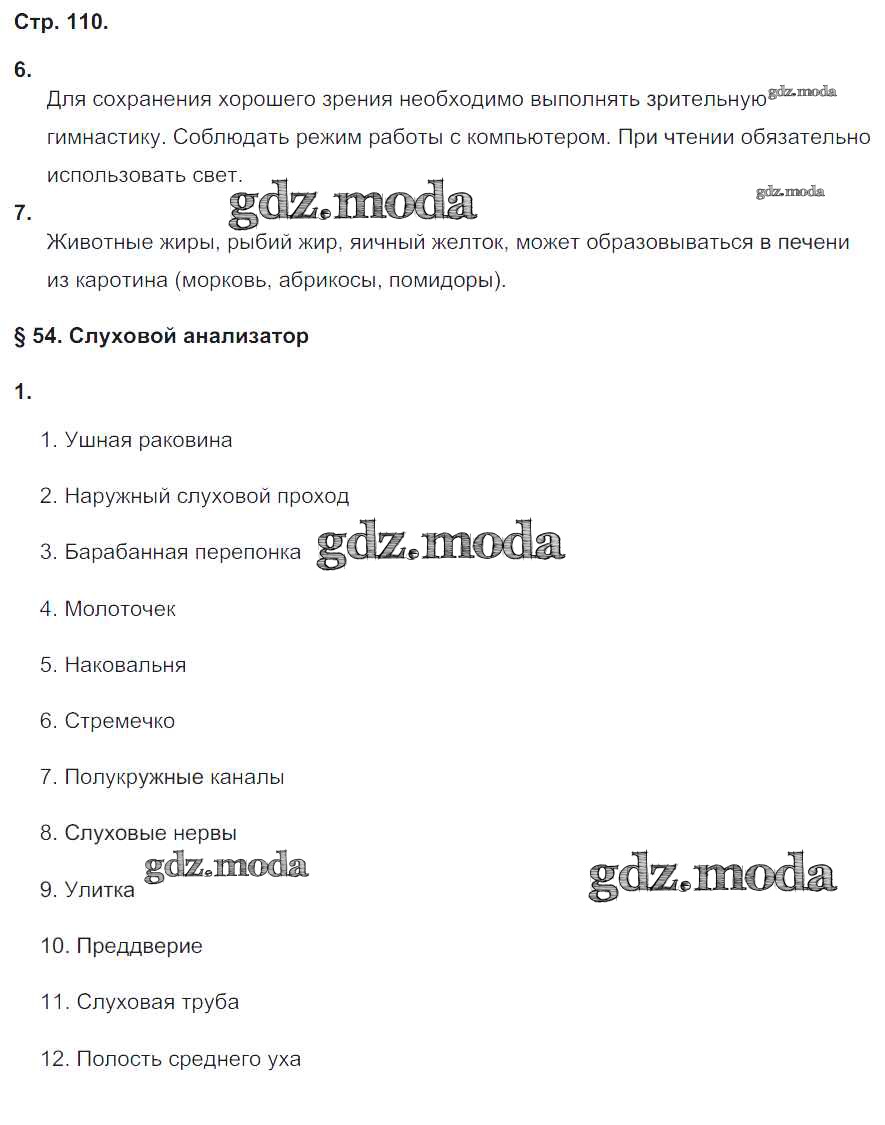 ГДЗ решение к заданию № 110 Биология 8 класс рабочая тетрадь Жемчугова М.Б. Русское слово 2017 ФГОС бесплатно на гдз.мода!