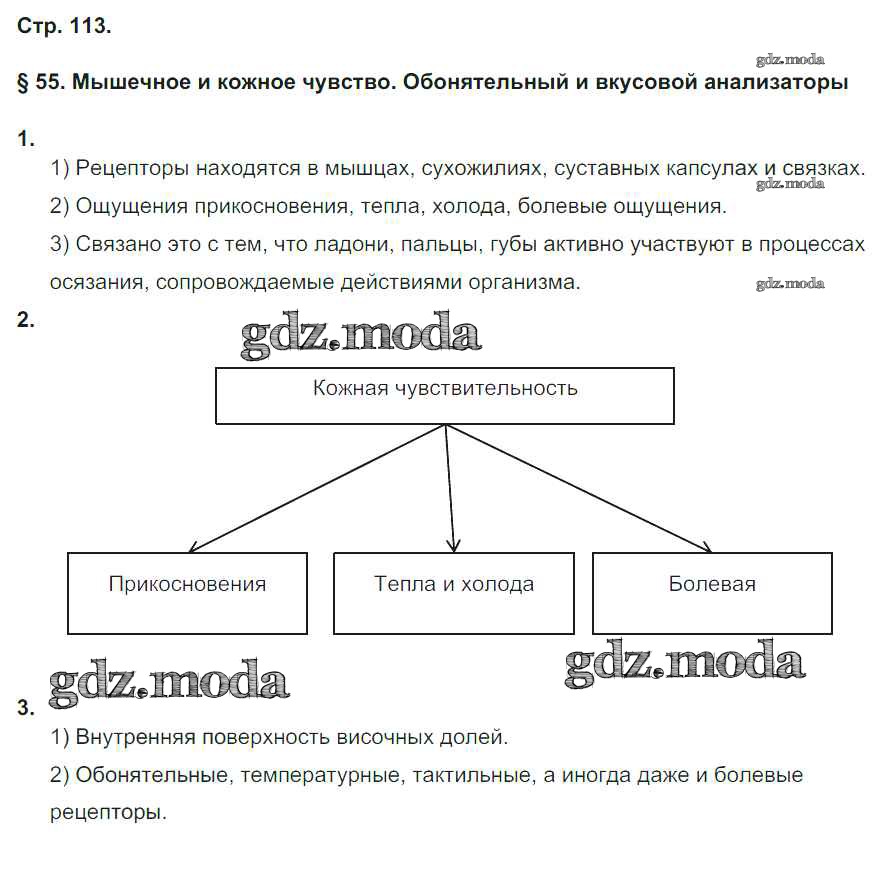 ГДЗ решение к заданию № 113 Биология 8 класс рабочая тетрадь Жемчугова М.Б. Русское слово 2017 ФГОС бесплатно на гдз.мода!