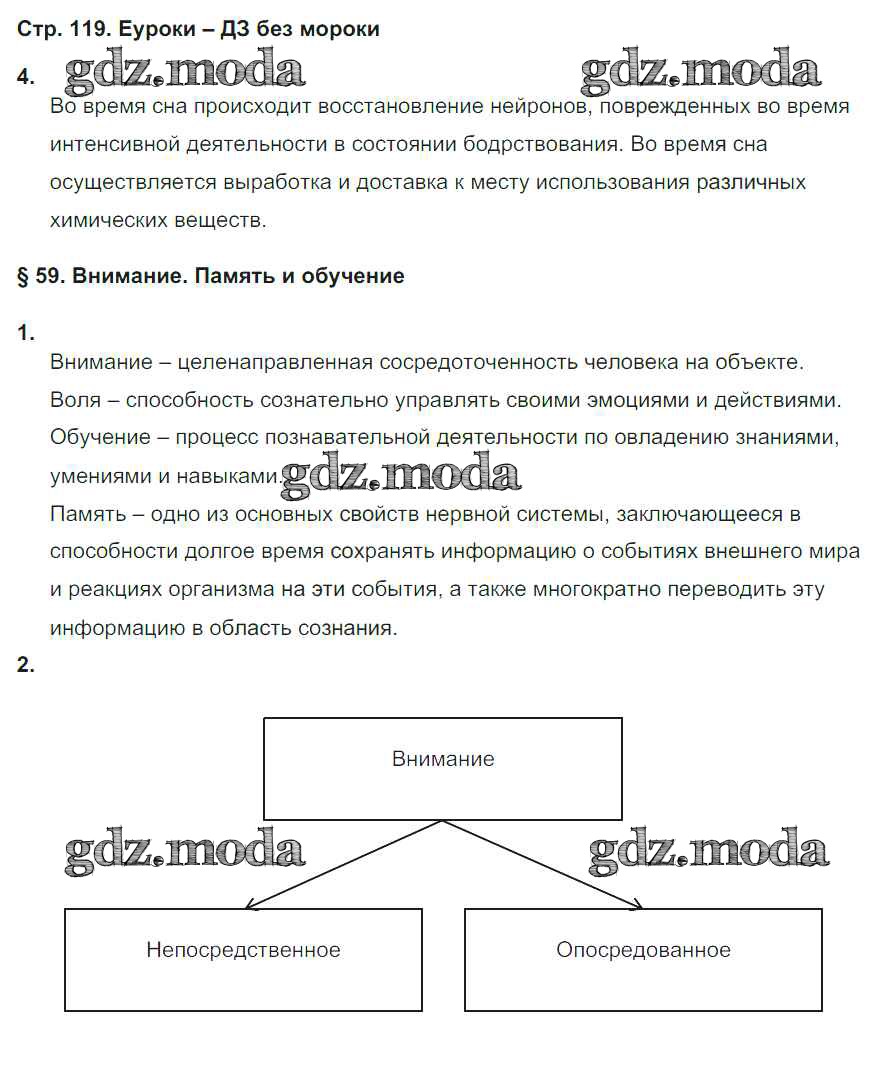 ГДЗ решение к заданию № 119 Биология 8 класс рабочая тетрадь Жемчугова М.Б. Русское слово 2017 ФГОС бесплатно на гдз.мода!