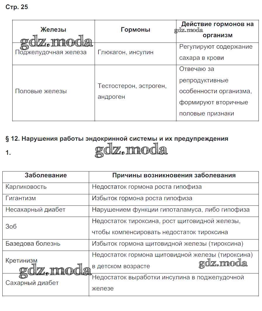ГДЗ решение к заданию № 25 Биология 8 класс рабочая тетрадь Жемчугова М.Б. Русское слово 2017 ФГОС бесплатно на гдз.мода!