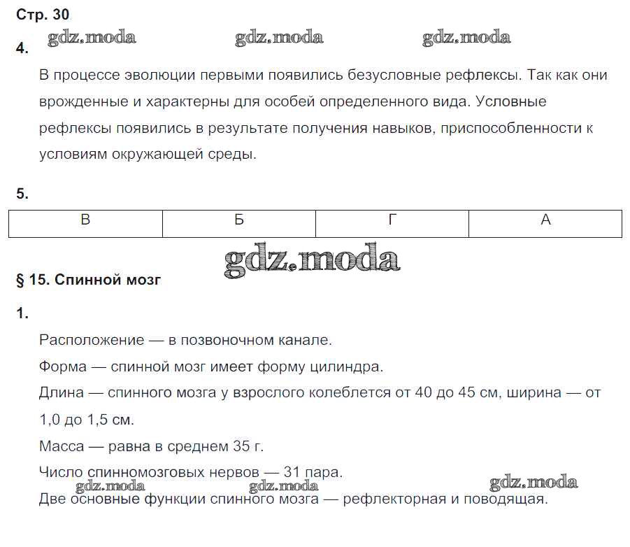 ГДЗ решение к заданию № 30 Биология 8 класс рабочая тетрадь Жемчугова М.Б. Русское слово 2017 ФГОС бесплатно на гдз.мода!