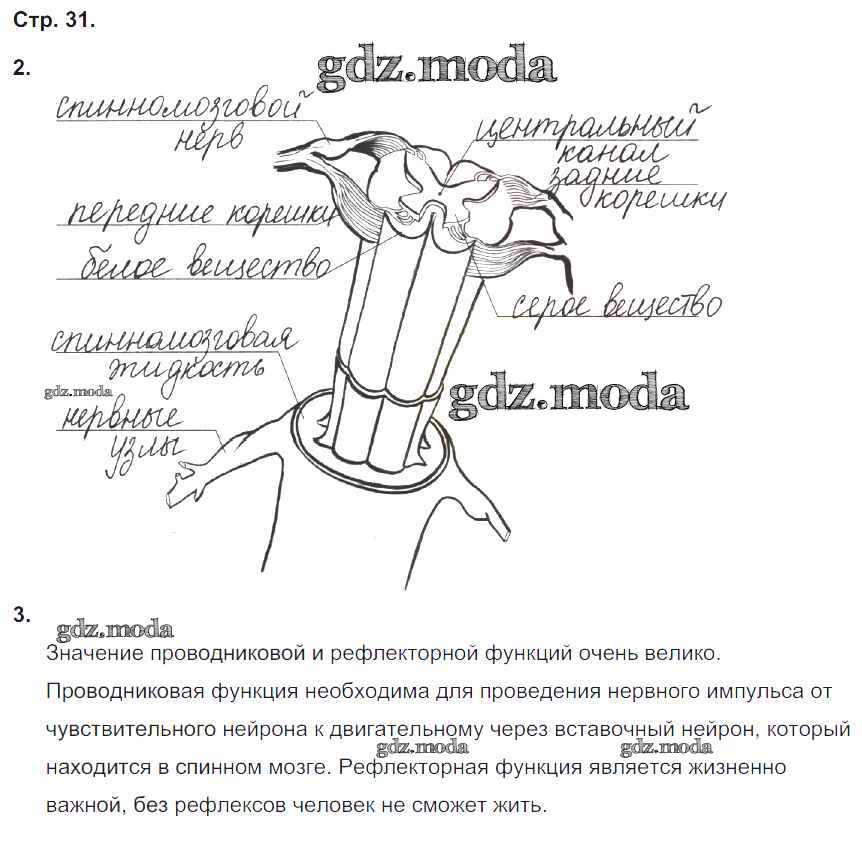 ГДЗ решение к заданию № 31 Биология 8 класс рабочая тетрадь Жемчугова М.Б. Русское слово 2017 ФГОС бесплатно на гдз.мода!