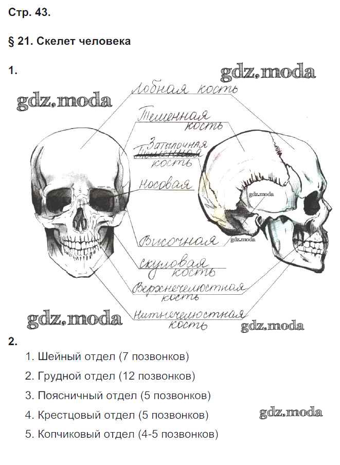 ГДЗ решение к заданию № 43 Биология 8 класс рабочая тетрадь Жемчугова М.Б. Русское слово 2017 ФГОС бесплатно на гдз.мода!