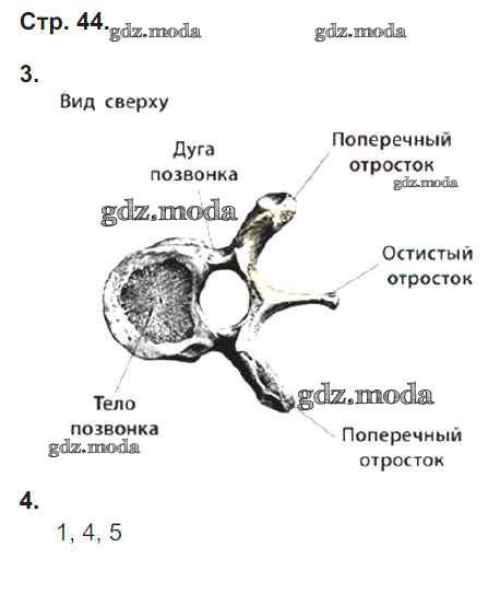 ГДЗ решение к заданию № 44 Биология 8 класс рабочая тетрадь Жемчугова М.Б. Русское слово 2017 ФГОС бесплатно на гдз.мода!