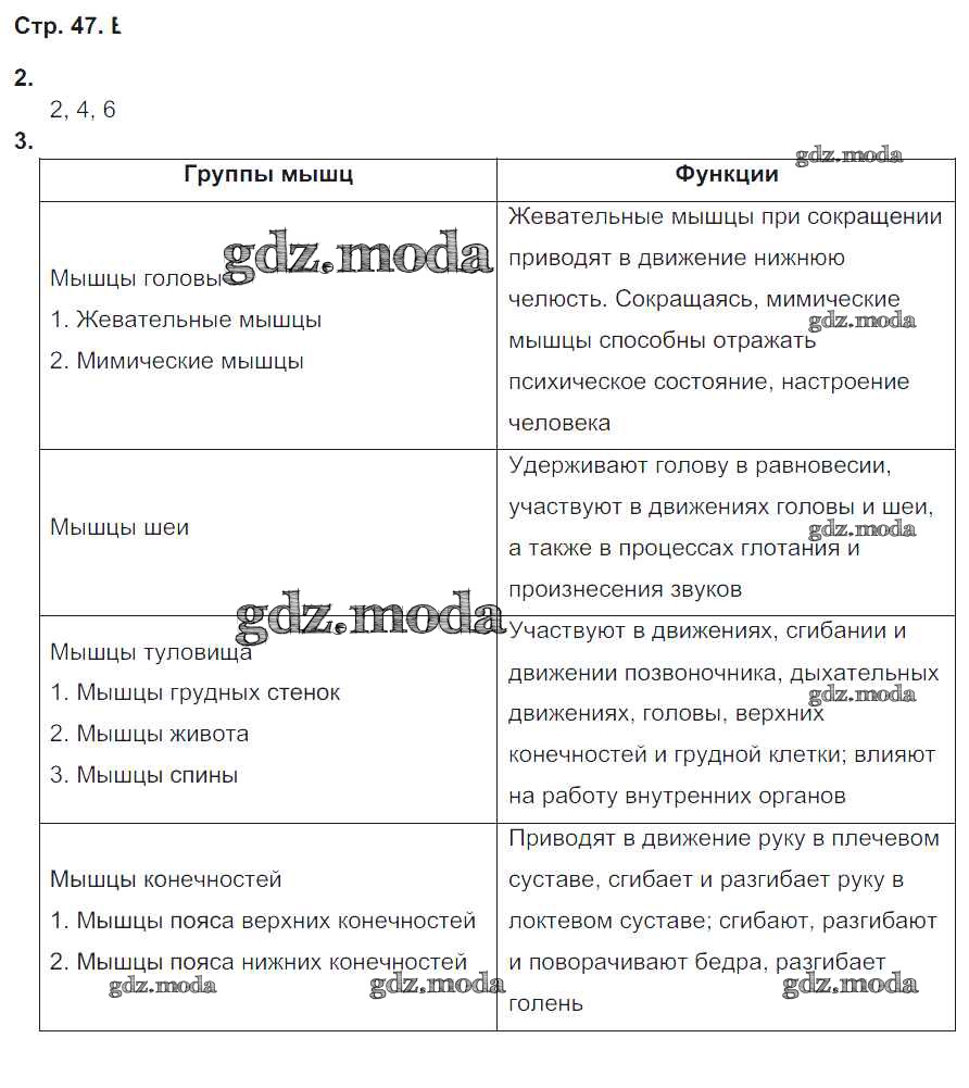 ГДЗ решение к заданию № 47 Биология 8 класс рабочая тетрадь Жемчугова М.Б. Русское слово 2017 ФГОС бесплатно на гдз.мода!