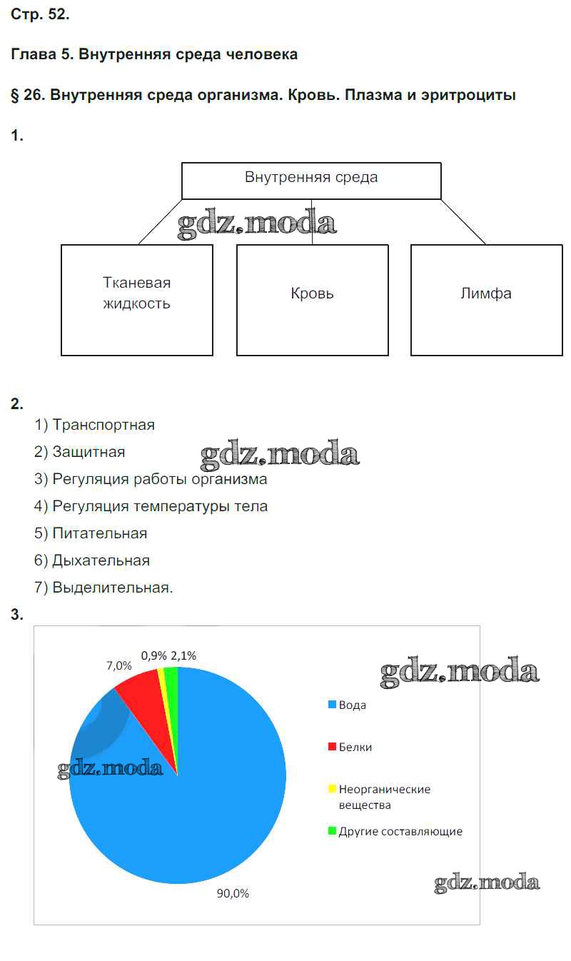 ГДЗ решение к заданию № 52 Биология 8 класс рабочая тетрадь Жемчугова М.Б. Русское слово 2017 ФГОС бесплатно на гдз.мода!