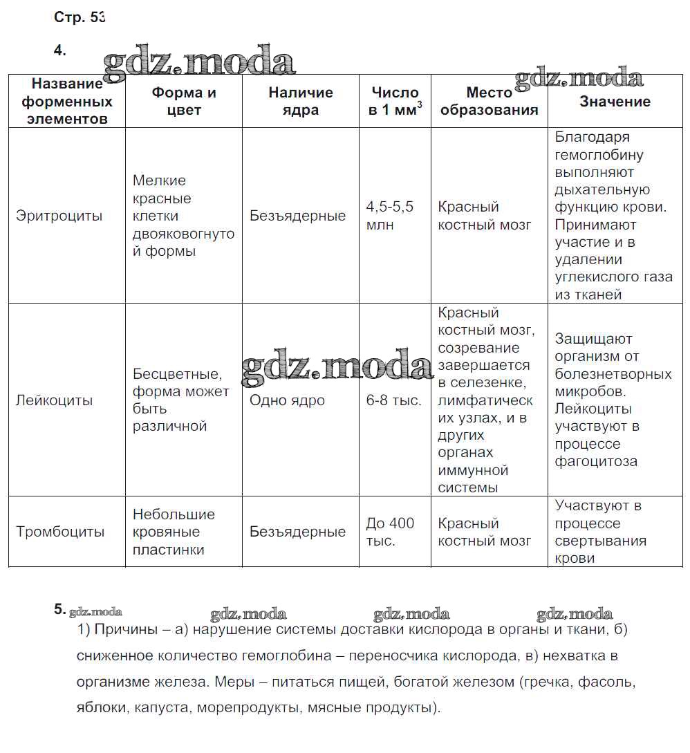 ГДЗ решение к заданию № 53 Биология 8 класс рабочая тетрадь Жемчугова М.Б. Русское слово 2017 ФГОС бесплатно на гдз.мода!