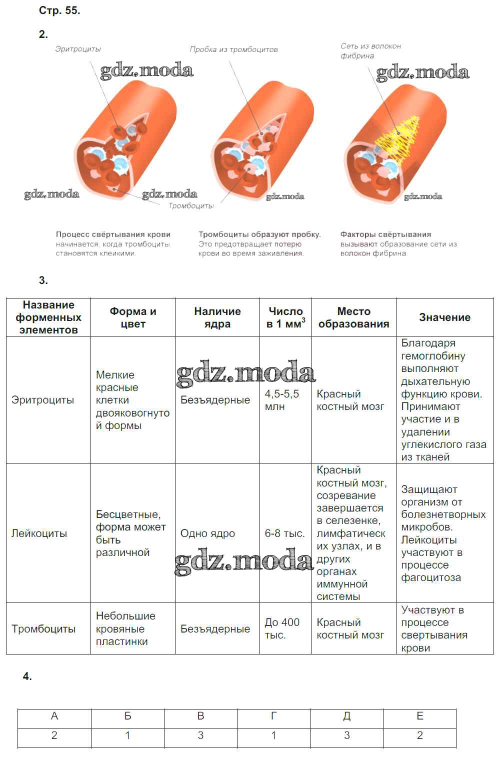 ГДЗ решение к заданию № 55 Биология 8 класс рабочая тетрадь Жемчугова М.Б. Русское слово 2017 ФГОС бесплатно на гдз.мода!