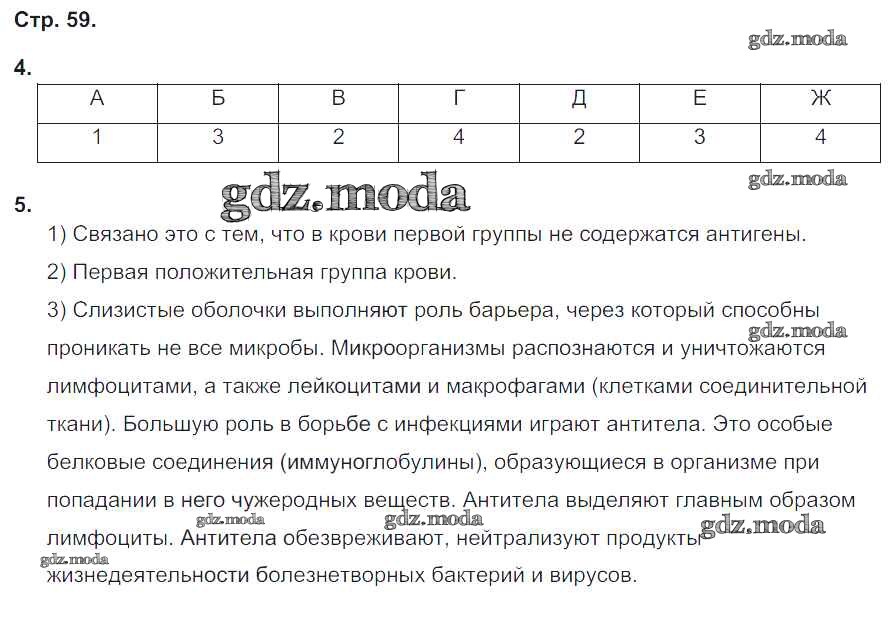 ГДЗ решение к заданию № 59 Биология 8 класс рабочая тетрадь Жемчугова М.Б. Русское слово 2017 ФГОС бесплатно на гдз.мода!