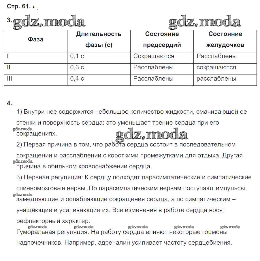 ГДЗ решение к заданию № 61 Биология 8 класс рабочая тетрадь Жемчугова М.Б. Русское слово 2017 ФГОС бесплатно на гдз.мода!