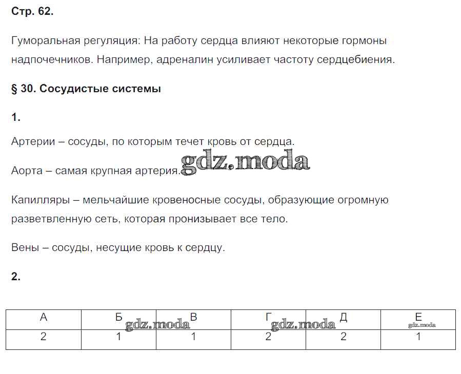 ГДЗ решение к заданию № 62 Биология 8 класс рабочая тетрадь Жемчугова М.Б. Русское слово 2017 ФГОС бесплатно на гдз.мода!