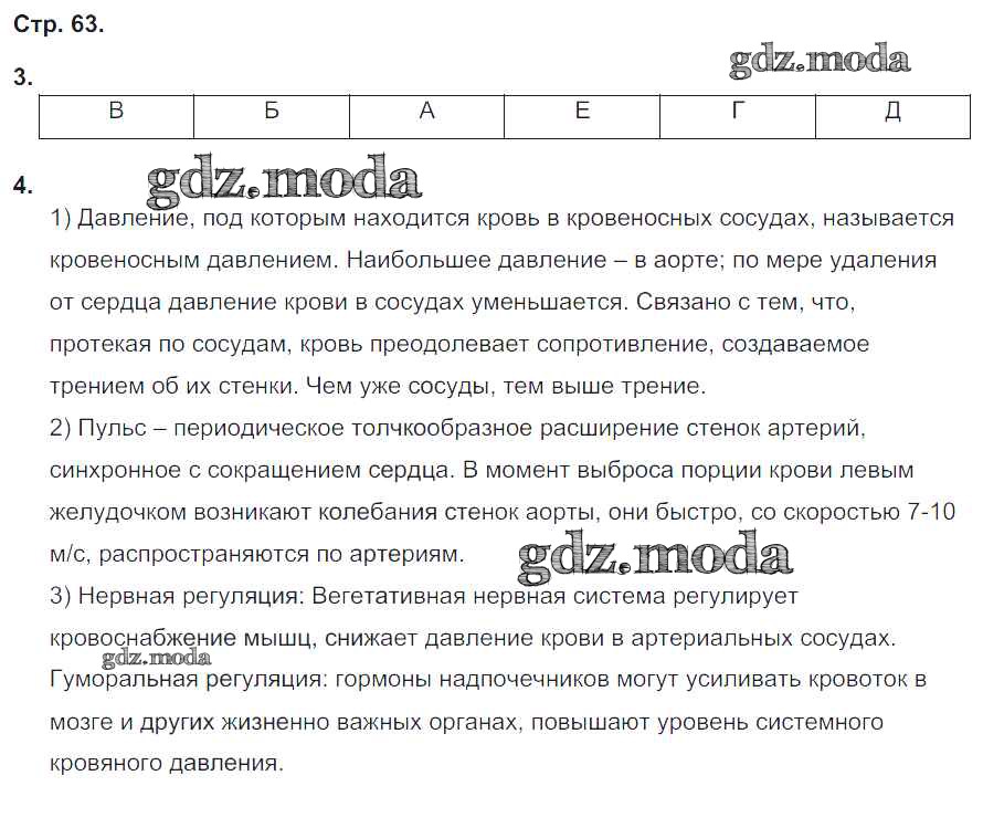 ГДЗ решение к заданию № 63 Биология 8 класс рабочая тетрадь Жемчугова М.Б. Русское слово 2017 ФГОС бесплатно на гдз.мода!
