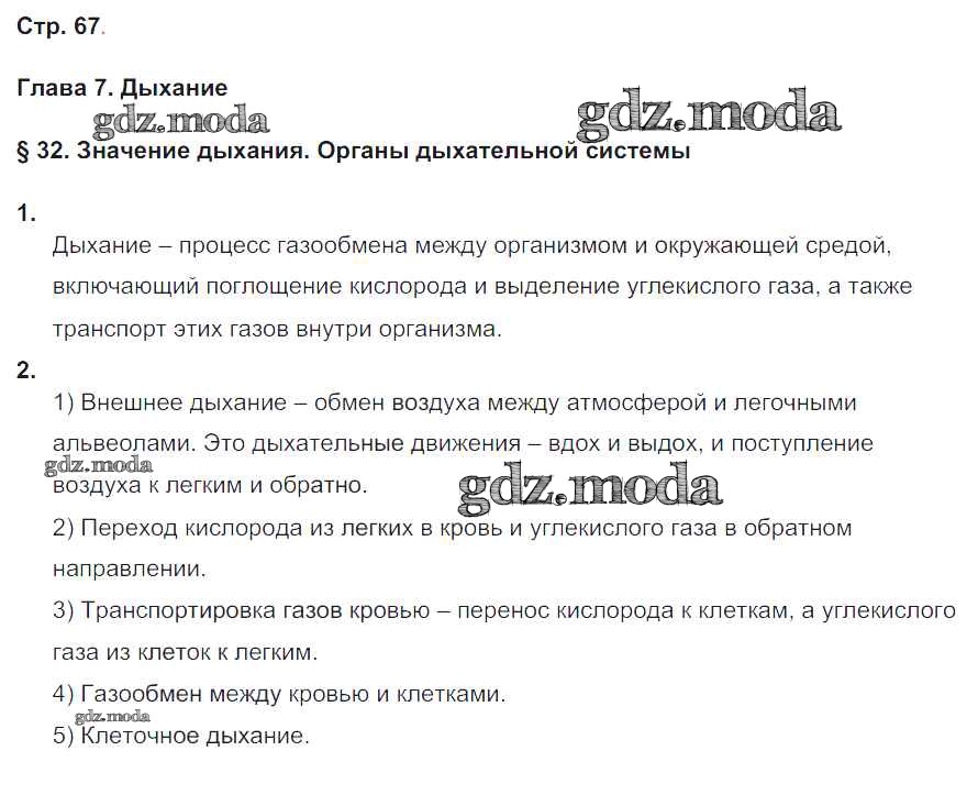ГДЗ решение к заданию № 67 Биология 8 класс рабочая тетрадь Жемчугова М.Б. Русское слово 2017 ФГОС бесплатно на гдз.мода!