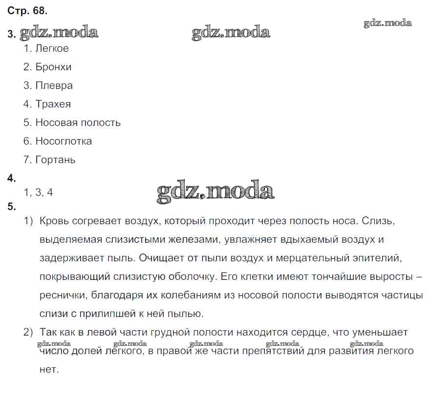ГДЗ решение к заданию № 68 Биология 8 класс рабочая тетрадь Жемчугова М.Б. Русское слово 2017 ФГОС бесплатно на гдз.мода!