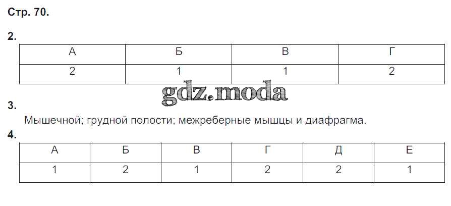ГДЗ решение к заданию № 70 Биология 8 класс рабочая тетрадь Жемчугова М.Б. Русское слово 2017 ФГОС бесплатно на гдз.мода!
