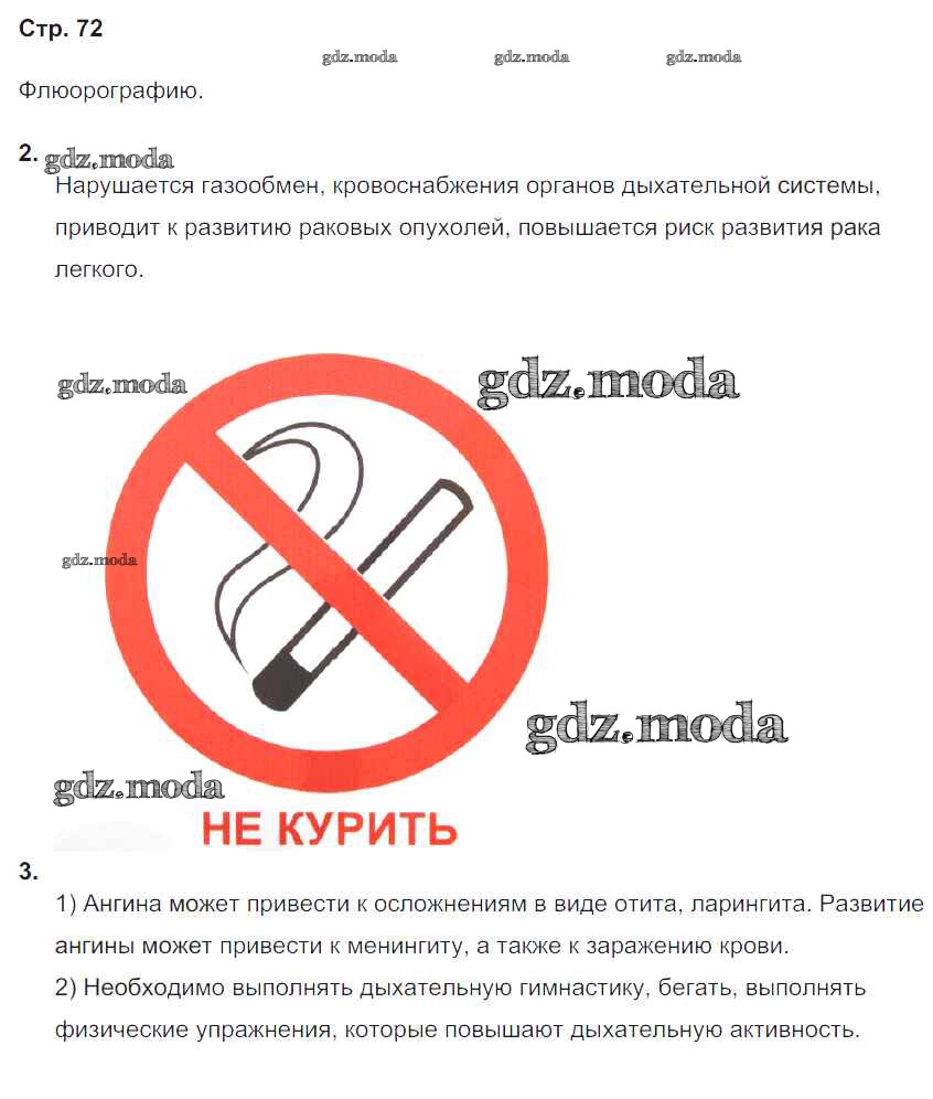 ГДЗ решение к заданию № 72 Биология 8 класс рабочая тетрадь Жемчугова М.Б. Русское слово 2017 ФГОС бесплатно на гдз.мода!
