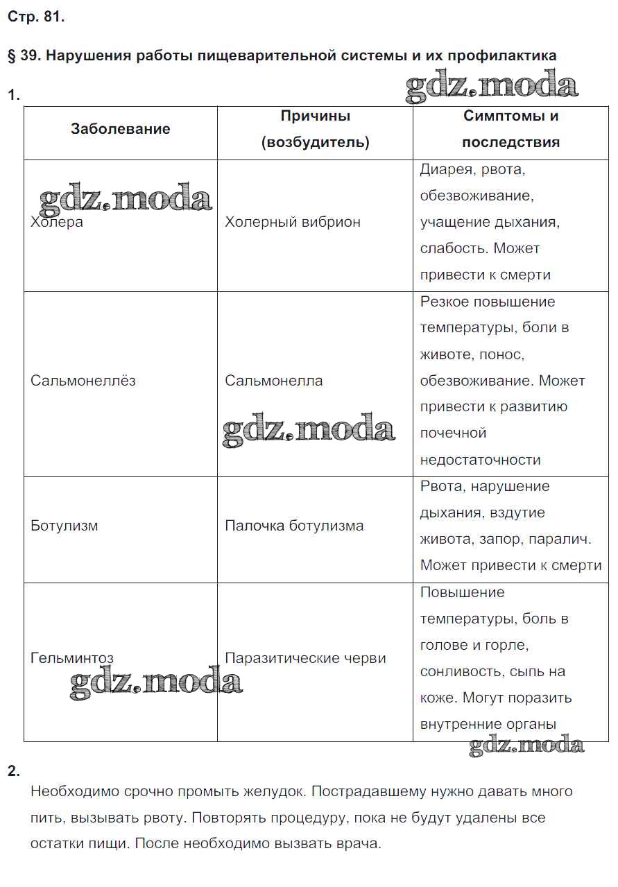 ГДЗ решение к заданию № 81 Биология 8 класс рабочая тетрадь Жемчугова М.Б. Русское слово 2017 ФГОС бесплатно на гдз.мода!