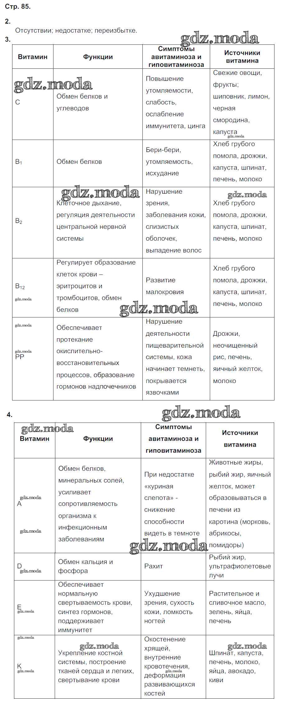 ГДЗ решение к заданию № 85 Биология 8 класс рабочая тетрадь Жемчугова М.Б. Русское слово 2017 ФГОС бесплатно на гдз.мода!