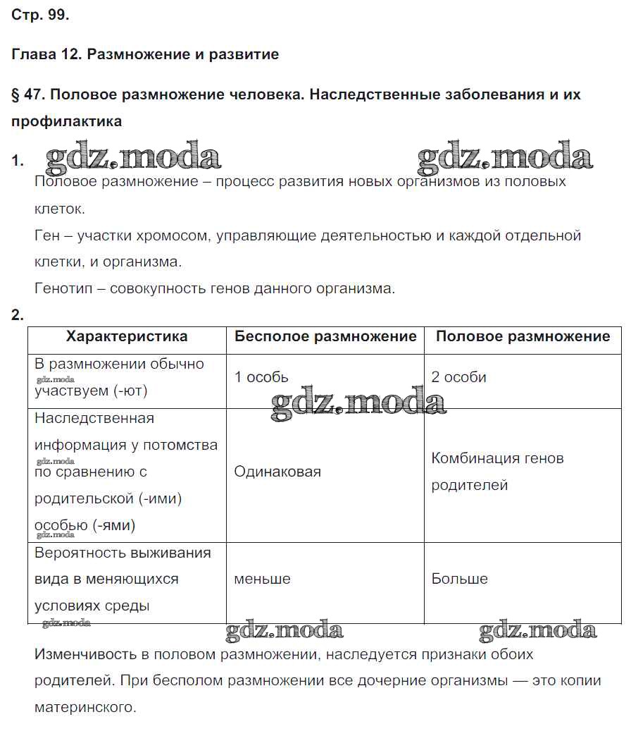 ГДЗ решение к заданию № 99 Биология 8 класс рабочая тетрадь Жемчугова М.Б. Русское слово 2017 ФГОС бесплатно на гдз.мода!