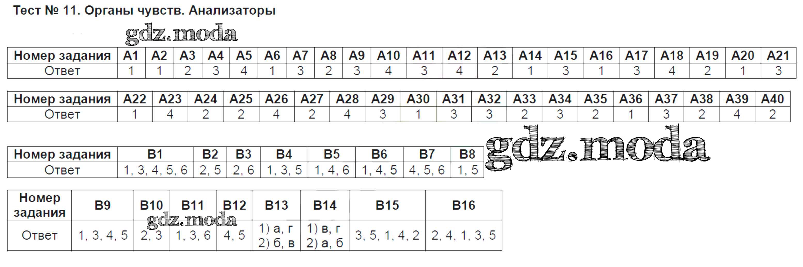 ГДЗ решение к заданию № 11 Биология 8 класс тесты Солодова Е.А. Вентана-граф 2019 ФГОС бесплатно на гдз.мода!