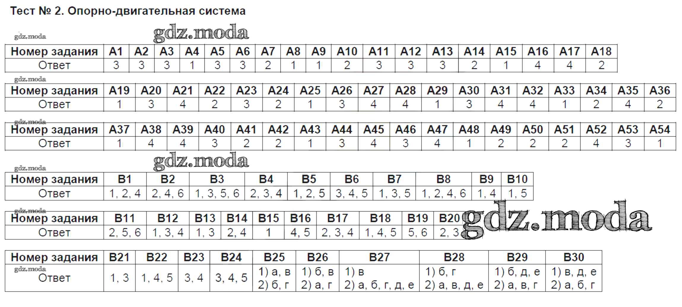 ГДЗ решение к заданию № 2 Биология 8 класс тесты Солодова Е.А. Вентана-граф 2019 ФГОС бесплатно на гдз.мода!