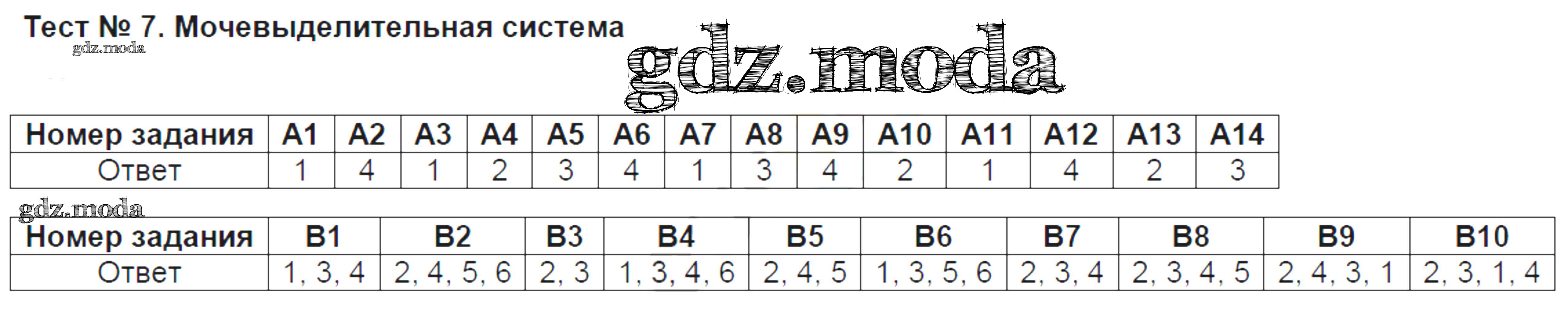 ГДЗ решение к заданию № 7 Биология 8 класс тесты Солодова Е.А. Вентана-граф 2019 ФГОС бесплатно на гдз.мода!