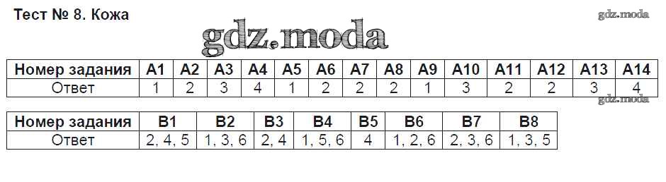 ГДЗ решение к заданию № 8 Биология 8 класс тесты Солодова Е.А. Вентана-граф 2019 ФГОС бесплатно на гдз.мода!