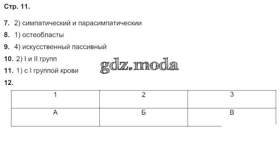 ГДЗ решение к заданию № 11 Биология 8 класс тетрадь-экзаменатор Сухорукова Л.Н. Просвещение 2016 ФГОС бесплатно на гдз.мода!