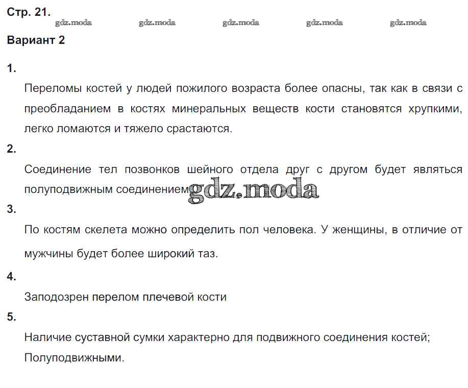 ГДЗ решение к заданию № 21 Биология 8 класс тетрадь-экзаменатор Сухорукова Л.Н. Просвещение 2016 ФГОС бесплатно на гдз.мода!
