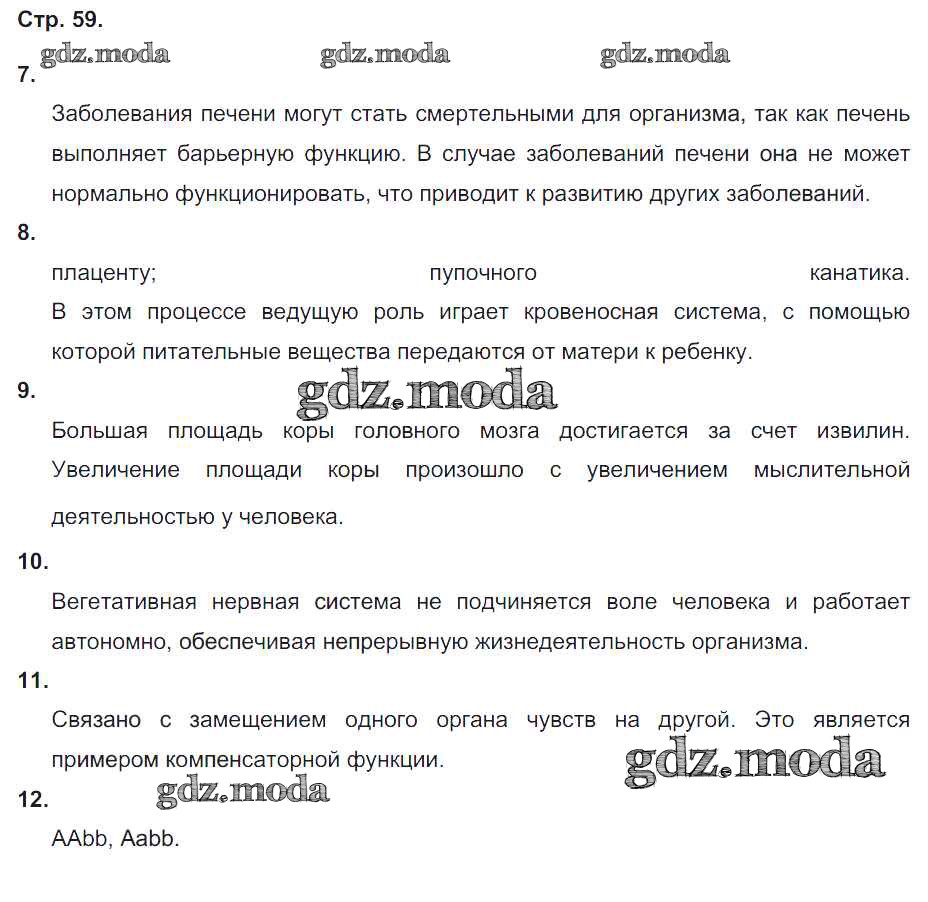 ГДЗ решение к заданию № 59 Биология 8 класс тетрадь-экзаменатор Сухорукова Л.Н. Просвещение 2016 ФГОС бесплатно на гдз.мода!