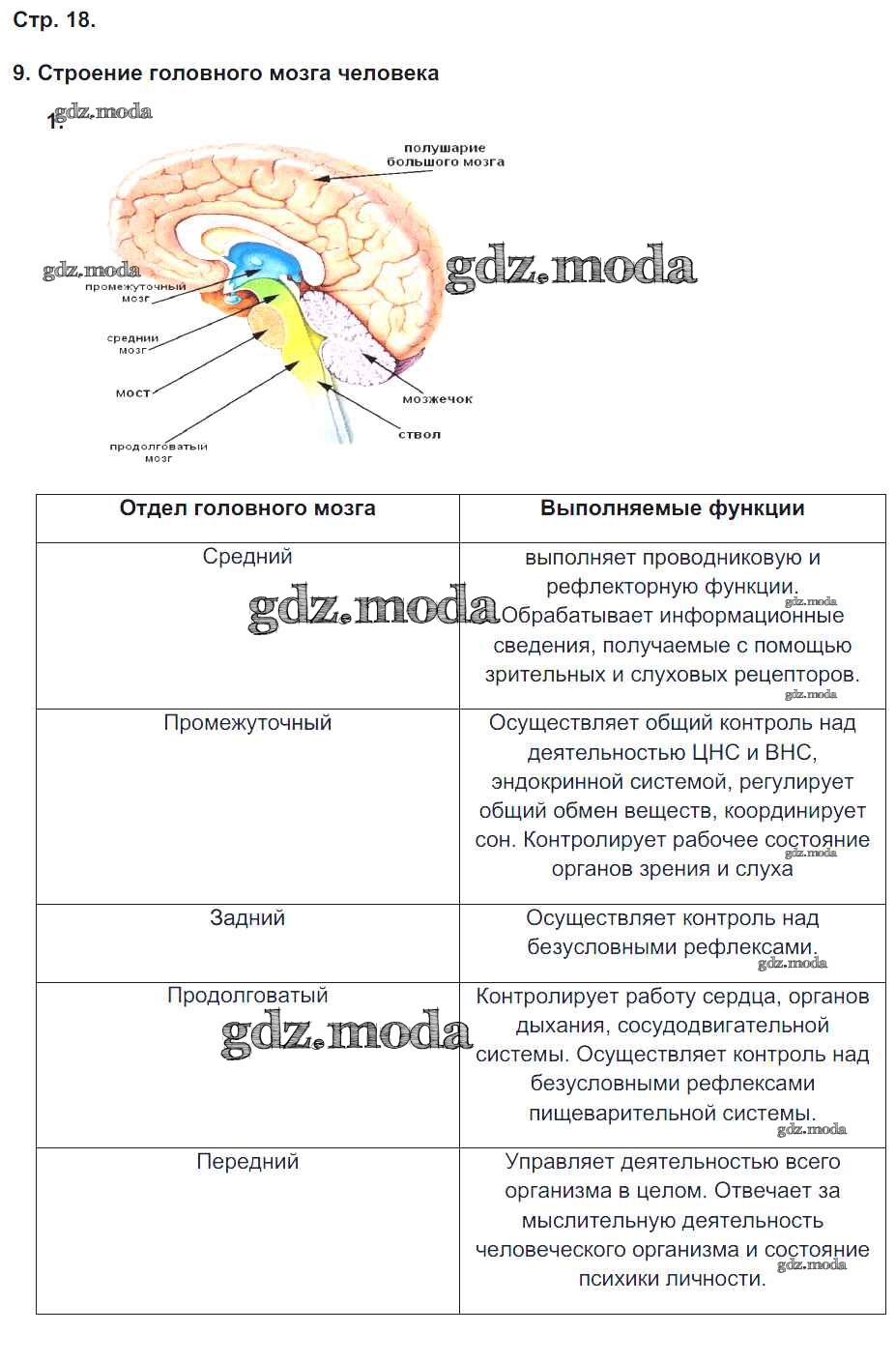 ГДЗ решение к заданию № 18 Биология 8 класс тетрадь-практикум Сухорукова Л.Н. Просвещение 2017 ФГОС бесплатно на гдз.мода!
