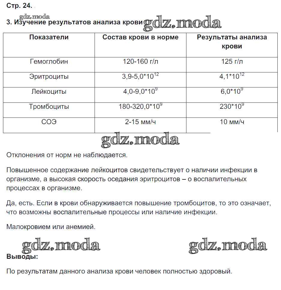 ГДЗ решение к заданию № 24 Биология 8 класс тетрадь-практикум Сухорукова Л.Н. Просвещение 2017 ФГОС бесплатно на гдз.мода!