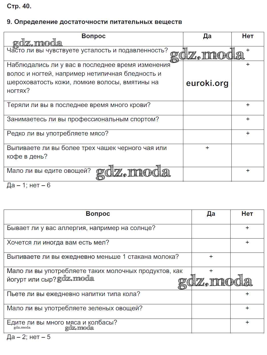 ГДЗ решение к заданию № 40 Биология 8 класс тетрадь-практикум Сухорукова Л.Н. Просвещение 2017 ФГОС бесплатно на гдз.мода!