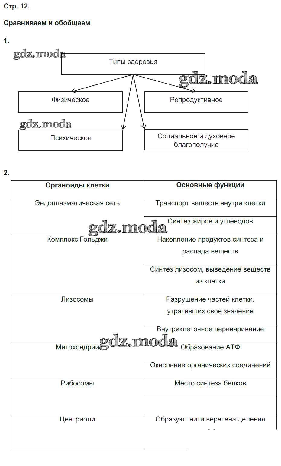 ГДЗ решение к заданию № 12 Биология 8 класс тетрадь-тренажёр Сухорукова Л.Н. Просвещение 2017 ФГОС бесплатно на гдз.мода!