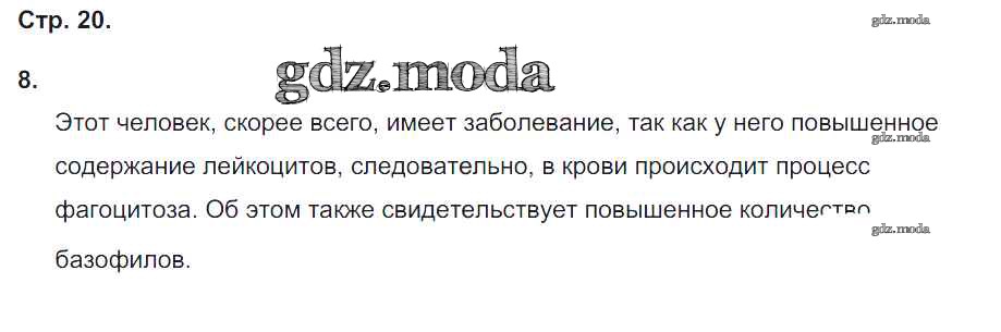 ГДЗ решение к заданию № 20 Биология 8 класс тетрадь-тренажёр Сухорукова Л.Н. Просвещение 2017 ФГОС бесплатно на гдз.мода!