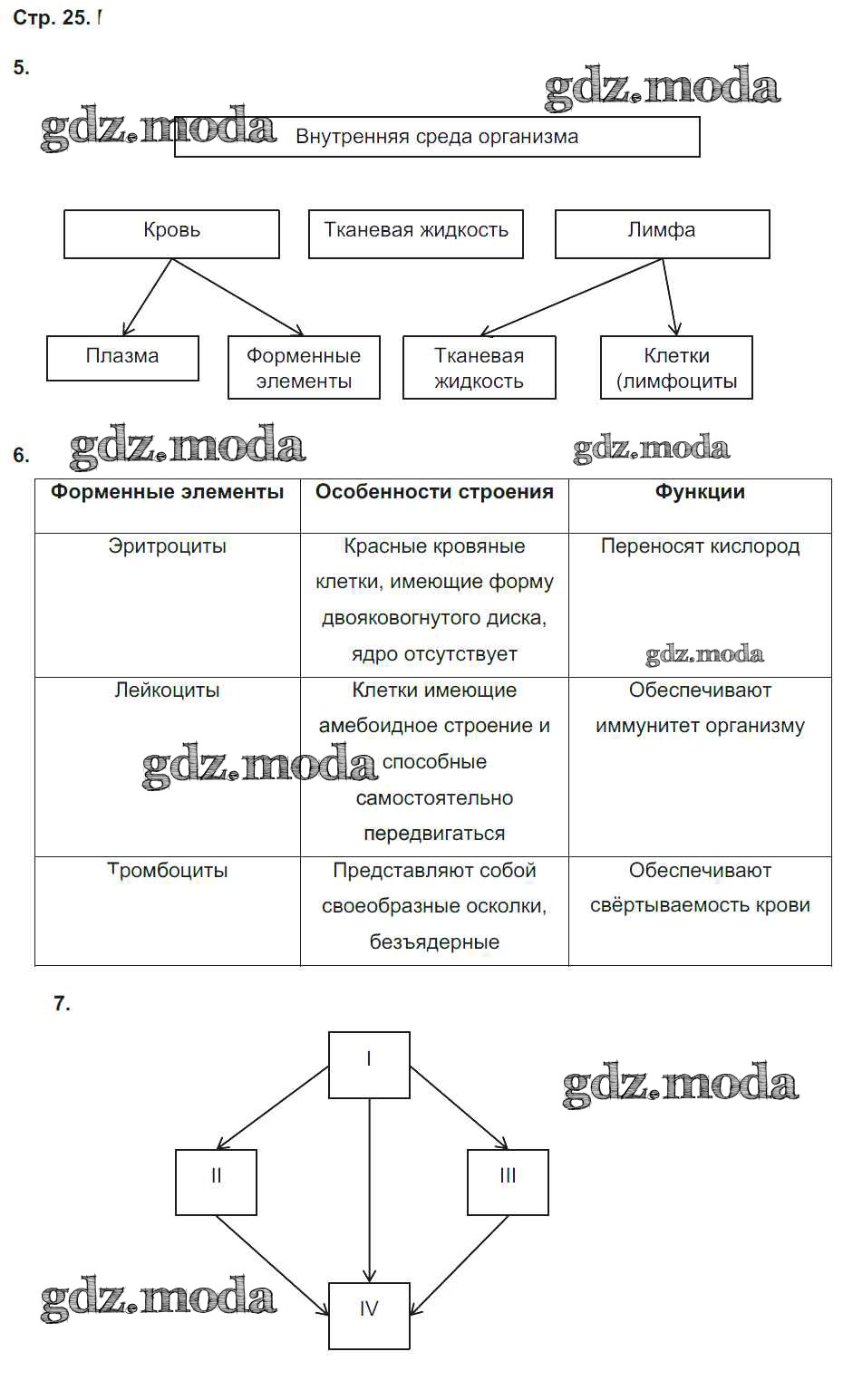 ГДЗ решение к заданию № 25 Биология 8 класс тетрадь-тренажёр Сухорукова Л.Н. Просвещение 2017 ФГОС бесплатно на гдз.мода!