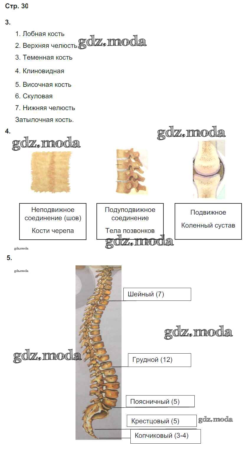 ГДЗ решение к заданию № 30 Биология 8 класс тетрадь-тренажёр Сухорукова Л.Н. Просвещение 2017 ФГОС бесплатно на гдз.мода!