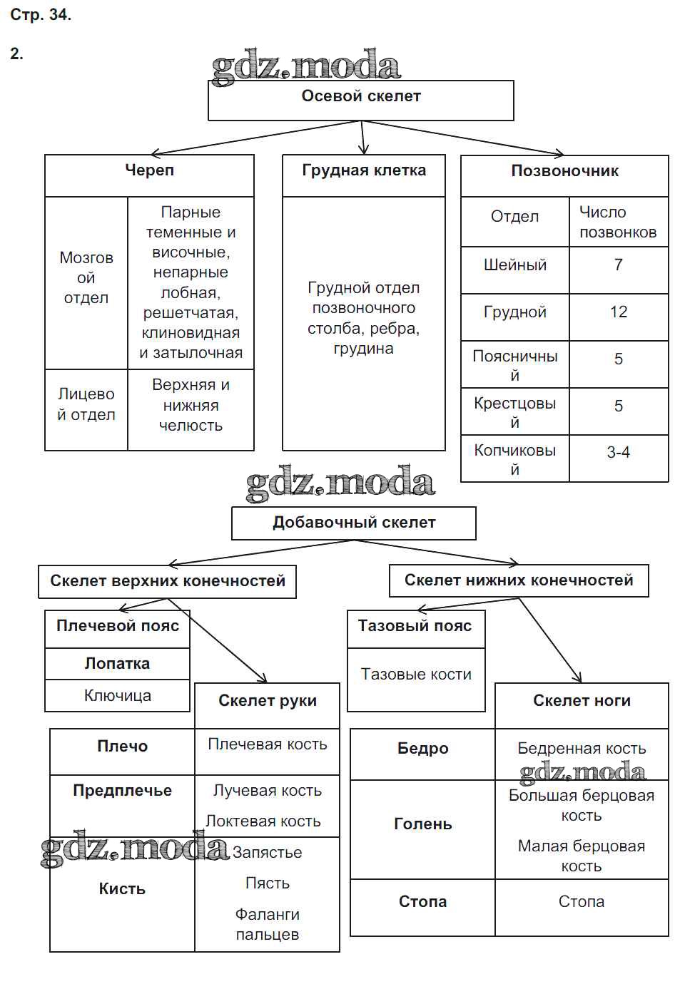 ГДЗ решение к заданию № 34 Биология 8 класс тетрадь-тренажёр Сухорукова Л.Н. Просвещение 2017 ФГОС бесплатно на гдз.мода!